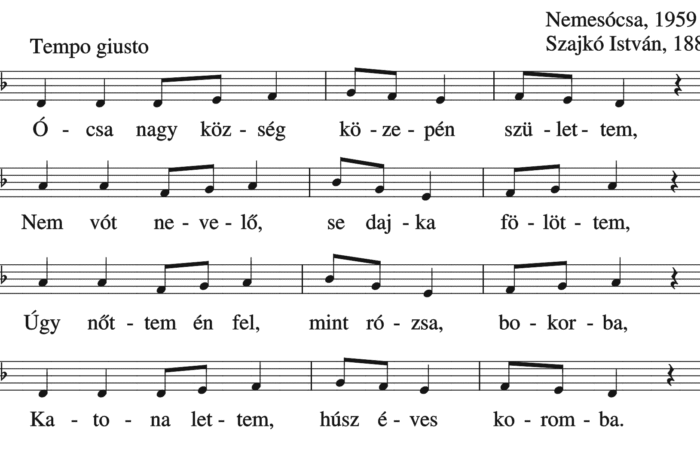Ócsa nagyközség közepén születtem, Nem vót nevelő se dajka fölöttem, Úgy nőttem én fel, mint rózsa, bokorba, Katona lettem, húsz...