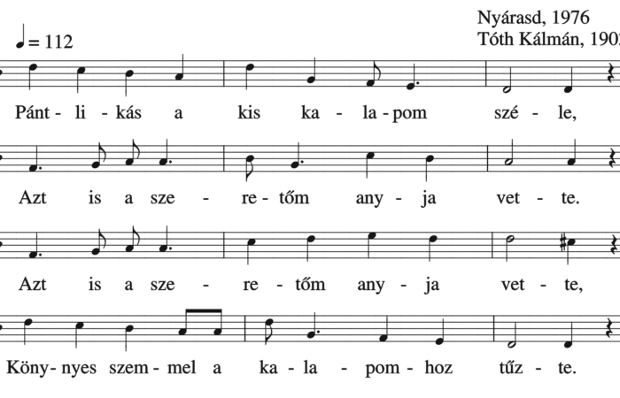 Pántlikás a kiskalapom széle, Azt is a szeretőm anyja vette. Azt is a szeretőm anyja vette, Könnyes szemmel a kalapomhoz...