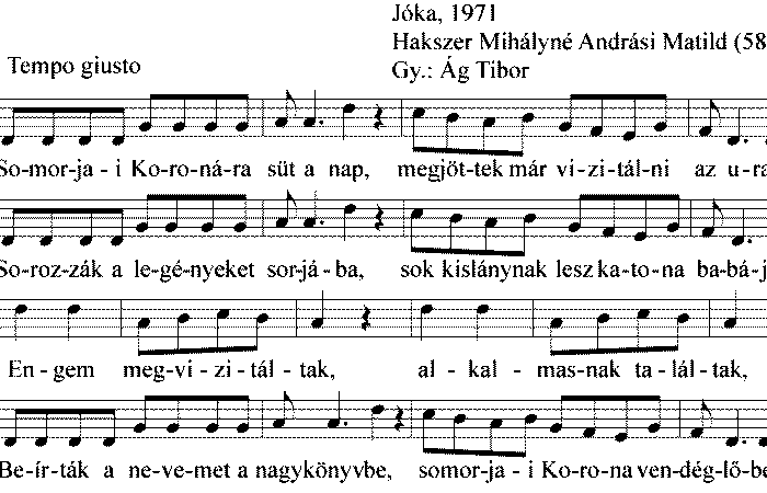 Somorjai Koronára süt a nap megjöttek már vizitálni az urak (ének, Felnőttek népdalai, katonanóta)
