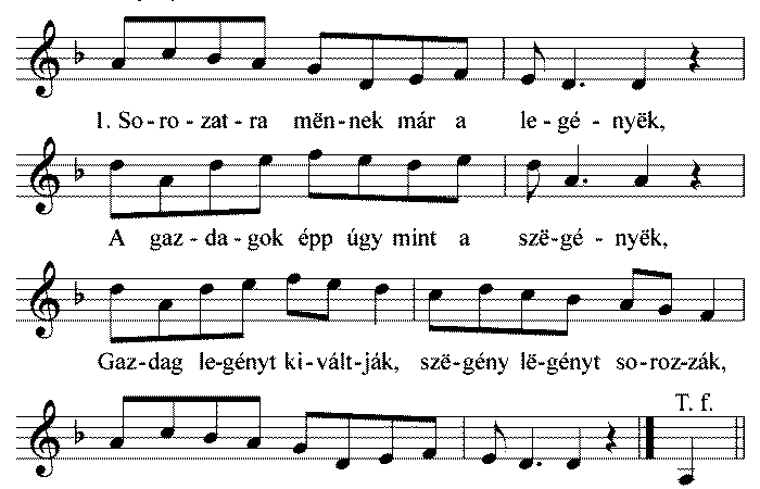 1. Sorozatra mennek már a legények, A gazdagok épp úgy, mint a szegények, Gazdag legényt kiváltják, szegény legényt sorozzák, Szegény...