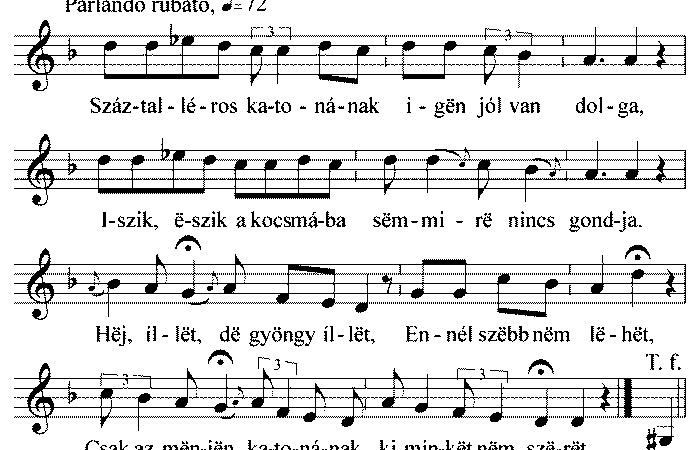1. Száztalléros katonának igen jól van dolga, Iszik, eszik a kocsmába semmire sincs gondja. Hej, ílet, de gyöngy ílet, ennél...