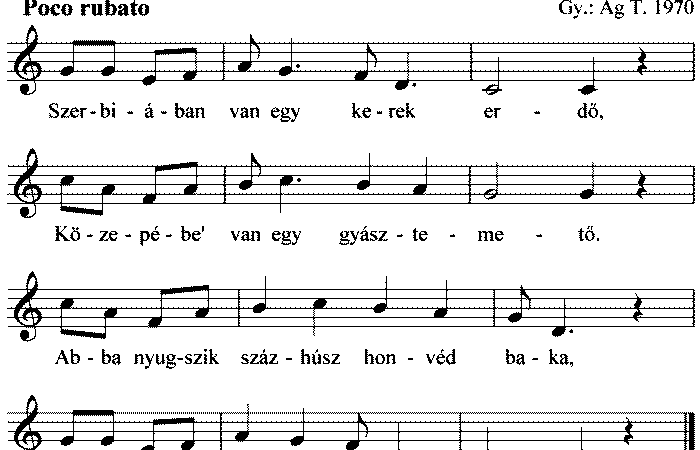 1. Szerbiában van egy kerek erdő, Közepébe’ van egy gyásztemető. Abba nyugszik százhúsz honvéd baka, Eltemette gyászos Galícia. 2. Köpönyegem...