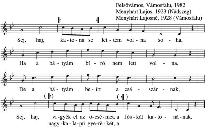 Sej, haj, katona se lettem volna soha, Ha a bátyám bíró nem lett volna. De a bátyám beírt a császárnak,...