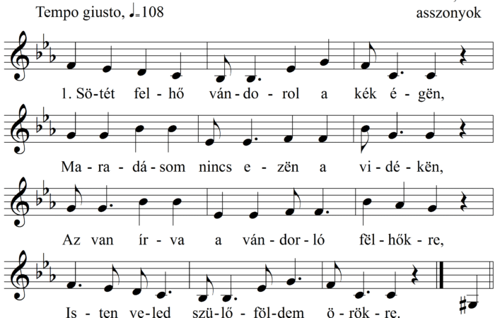 1. Sötét fëlhő vándorol a kék égën, Maradásom nincs ezën a vidékën, Az van írva a vándorló fëlhőkre, Isten veled...