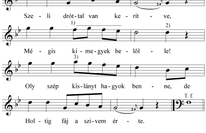 1. Szeli dróttal van kerítve, Mégis kimegyek belőle! Oly szép kislányt hagyok benne, de Holtig fáj a szivem érte. 2. Lányok,...