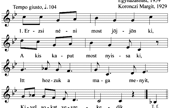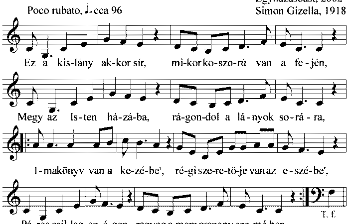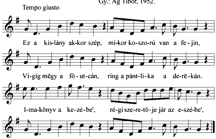 1. Ez a kislány akkor szép, mikor koszorú van a fejin, Végig mëgy a Fő utcán, ring a pántlika a...