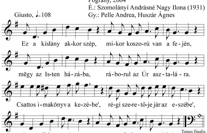 Ez a kislány akkor szép, mikor koszorú van a fején, Megy az Isten házába, ráborul az Úr asztalára, Csatos imakönyv...