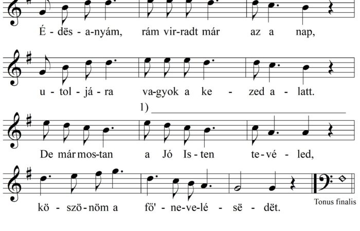 1. Édesanyám, rám virradt már az a nap, Utoljára vagyok a kezed alatt, De már mostan a Jó Isten tevéled,...