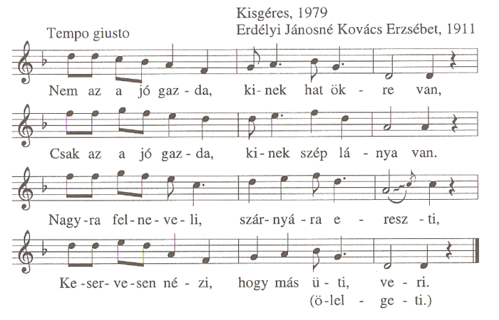 1. Nem az a jó gazda, kinek hat ökre van,Csak az a jó gazda, kinek szép lánya van,Nagyra felneveli, szárnyára...