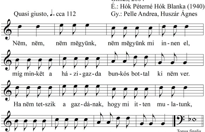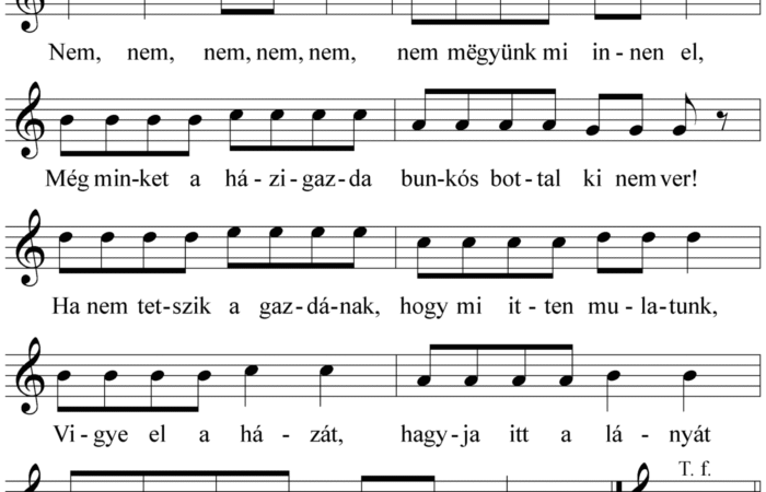 Nem, nem, nem megyünk, nem megyünk mi innen el, Míg minket a házigazda bunkós bottal ki nem ver. Ha nem...