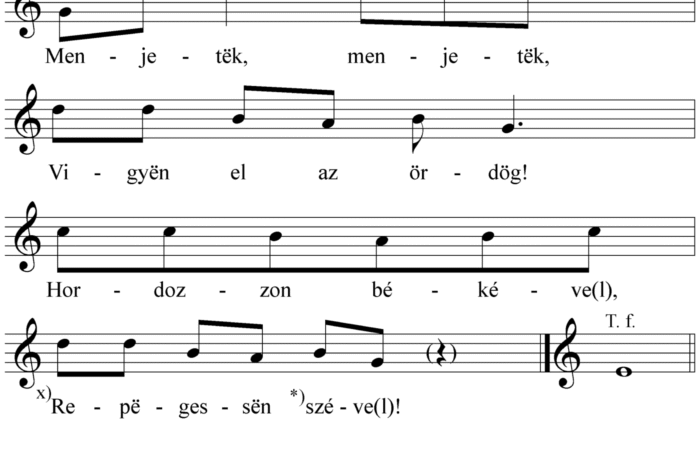 Mënjetëk mënjetëk, Vigyën el az ördög! Hordozzon békéve(l), Repëgessën széve(l)!