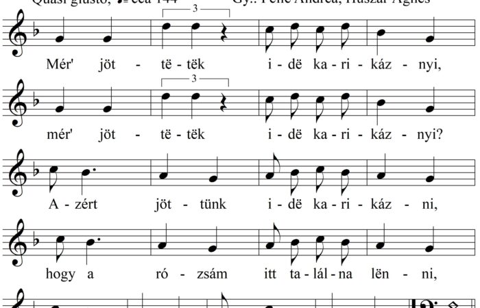 Mér‘ jöttetek ide karikáznyi? Mér‘ jöttetek ide karikáznyi? Azért jöttünk ide karikázni, Hogy a rózsám itt találna lenni, Kezét, lábát...
