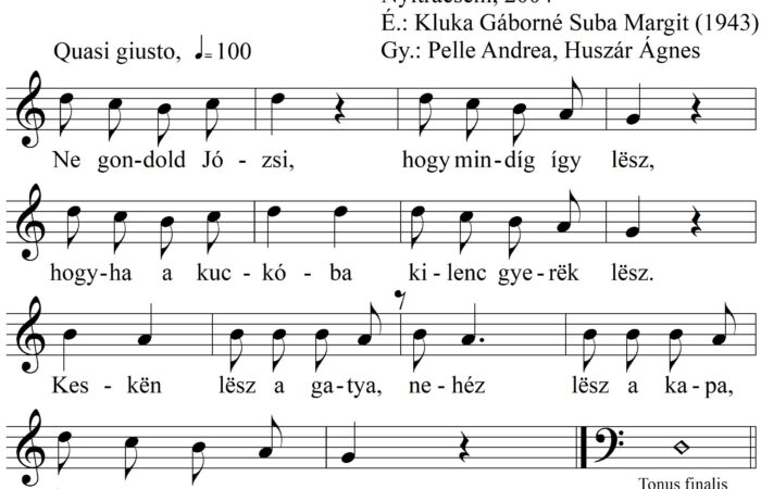 Ne gondold, Józsi, hogy mindig így lesz, Hogyha a kuckóba kilenc gyerek lesz. Kesken lesz a gatya, nehéz lesz a...