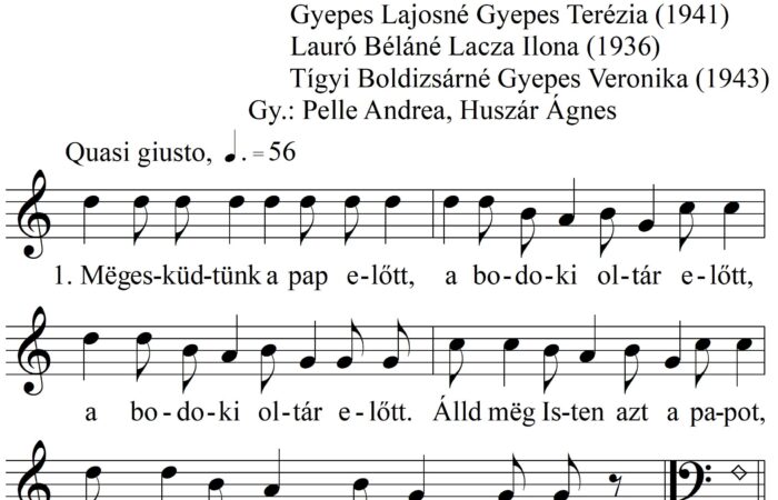 1. Megesküdtünk a pap előtt, A bodoki oltár előtt, A bodoki oltár előtt, Áldd meg Isten azt a papot, Aki...