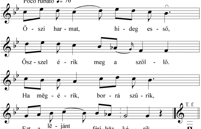 1. Őszi harmat, hideg esső, Ősszel érik meg a szőlő. Ha mëgérik, borrá szűrik, Ezt a lëájnt férjhëz kérik. 2....