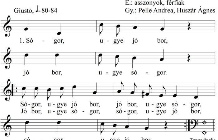 1. Sógor ugye jó bor, Jó bor ugye sógor, Sógor ugye jó bor, jó bor ugye sógor, Sógor ugye jó...