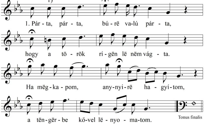 1. Párta, párta, búre valú párta, Hogy a török rígen le nem vágta, Ha megkapom annyire hagyítom, A tengerbe kővel...