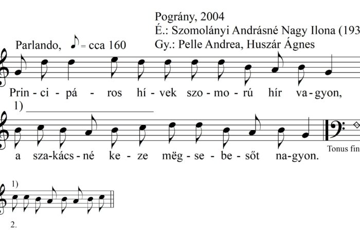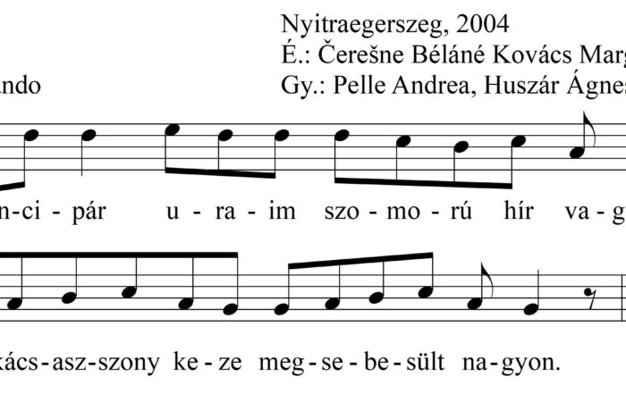 1. Principáros hívek szomorú hír vagyon, A szakácsné keze megsebesőt nagyon. 2. Principáros hívek szomorú hír vagyon, A szakácsné lába...