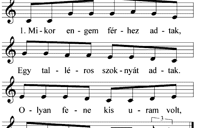 1. Mikor engem férhez adtak, Egy talléros szoknyát adtak. Olyan fene kis uram volt, Egy polturás nadrágja vót. 2. Árokháton...