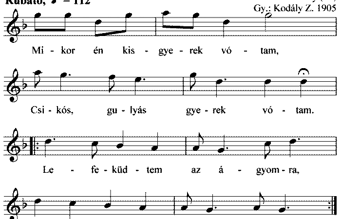 1. Mikor én kisgyerek voltam, Csikós gulyás gyerek vótam. Lefeküdtem az ágyomra, Onnan néztem a nyájamra. 2. Szalad német a...