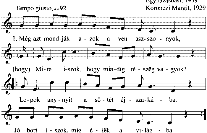 1. Még azt mondják azok a vénasszonyok, (hogy) Mire iszok, hogy mindig részëg vagyok­? Lopok annyit a sötét éjszakába, Jó...