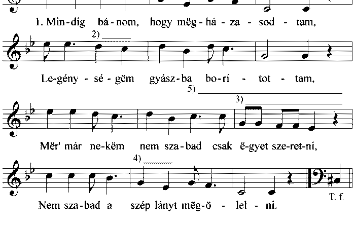 1. Mindig bánom, hogy mëgházasodtam, Legénységëm gyászba borítottam, Mër’ már nekëm nem szabad csak ëgyet szeretni, Nem szabad a szép...