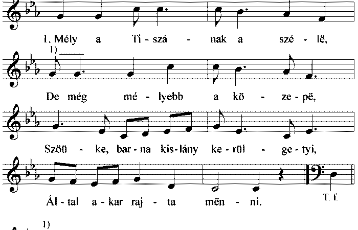 1. Mély a Tiszának a szélë, De még mélyebb a közepe, Szöüke, barna kislány kerülgetyi, Által akar rajta mënni. 2....