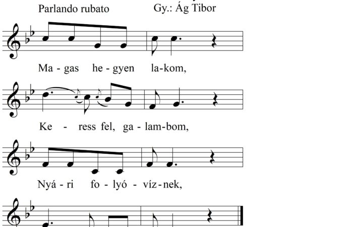 Magas hëgyën lakom, Keress fël galambom, Nyári folyó víznek Csak zúgását hallom.