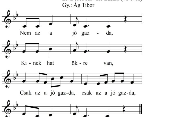 1. Nem az a jó gazda. Kinek hat ökre van, Csak az a jó gazda, csak az a jó gazda,...