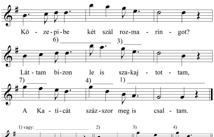 1. Láttál-e mán vízen bugyborékot? Közepib két szál rozmaringot? láttam bizon le is szakajtottam, A Katicát százszor meg is csaltam...