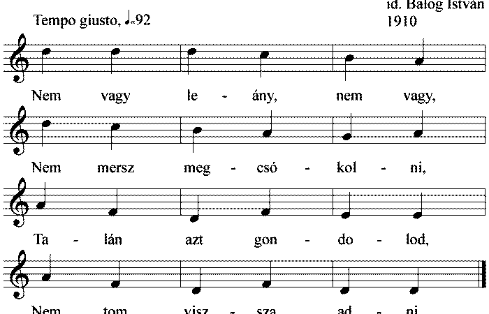1. Nem vagy leány, nem vagy, Nem mersz megcsókolni, Talán azt gondolod, Nem tom visszaadni. 2. Vissza tudom adni, Meg...