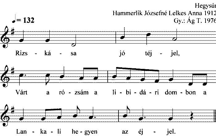 1. Rizskása jó téjjel, Várt a rózsám a libidári dombon a Lankali hegyen az éjjel. 2. Édesanyám mëgtudta, A lányának...