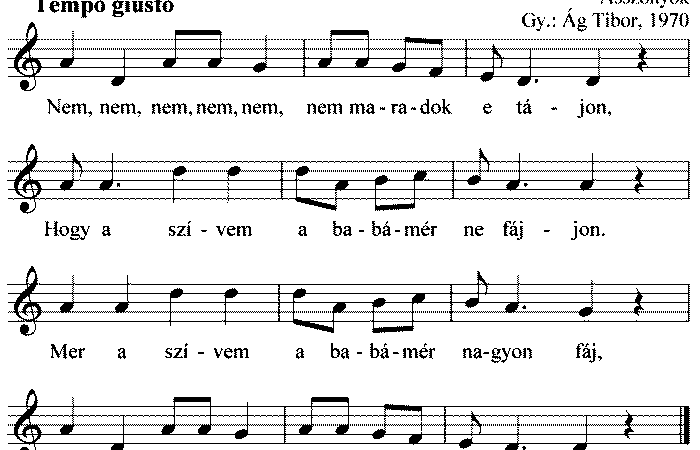 1. Nem, nem, nem, nem, nem, nem maradok e tájon, Hogy a szívem a babámér ne fájjon, Mer a szívem...