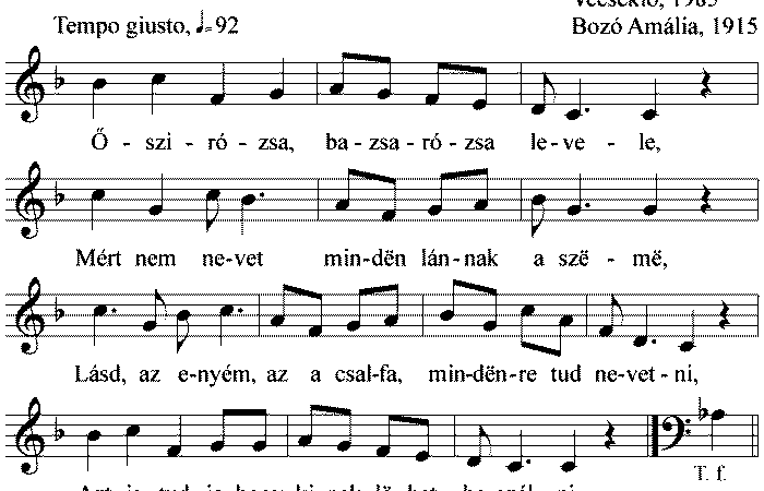 Őszirózsa, bazsarózsa levele, Mért nem nevet mindën lánnak a szëmë, Lásd, az enyém, az a csalfa, mindënre tud nevetni, Azt...