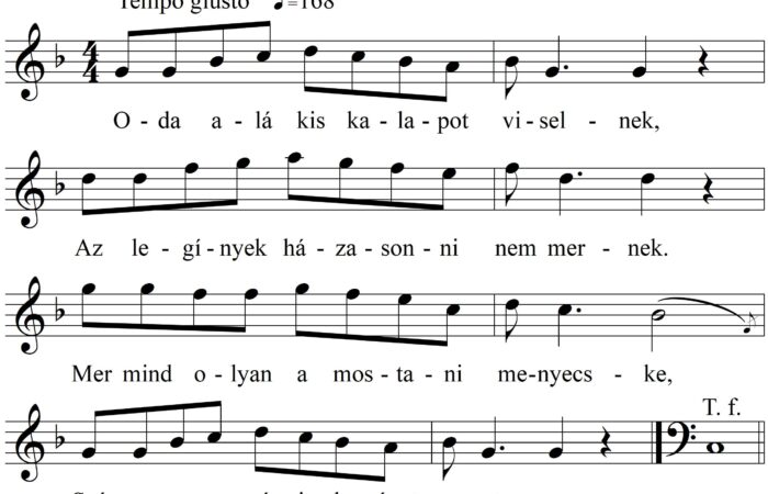 1. Oda alá kis kalapot viselnek, Az legínyek házasonni nem mernek. Mer mind olyan a mostani menyecske, Szép az ura,...