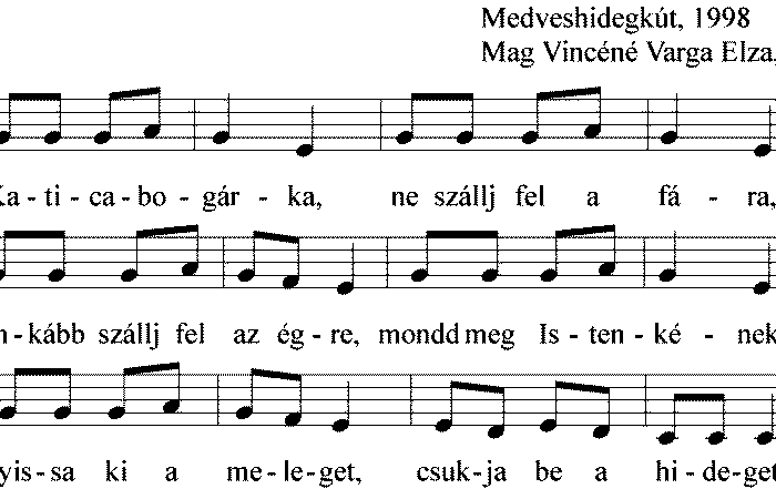 Katicabogárka, Ne szállj fel a fára, Inkább szállj fel az égre, Mondd meg Istenkének, Nyissa ki a meleget, Csukja be...