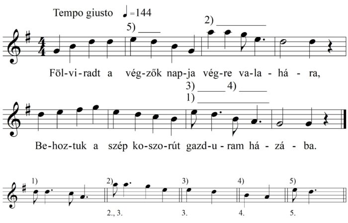 1. Fölviradt a végzők napja végre valahára, Behoztuk a szép koszorút gazduram házába. 2. Most már csapra azt a hordót,...