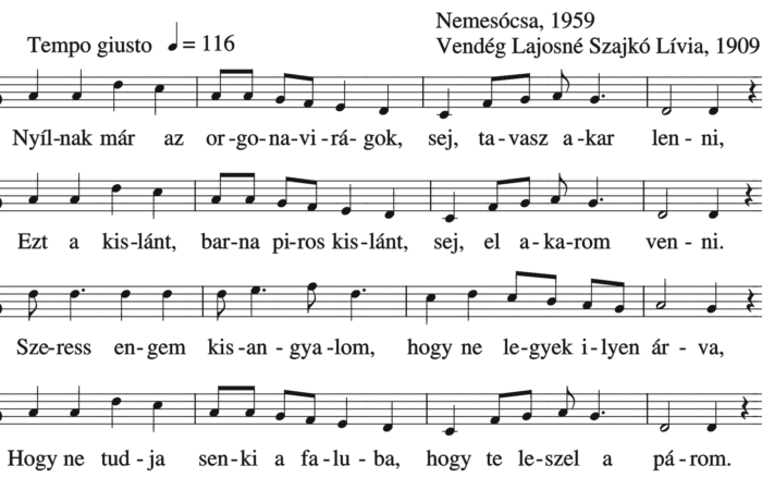 Nyílnak már az orgonavirágok sej tavasz akar lenni (ének, Felnőttek népdalai, szerelmi dal)