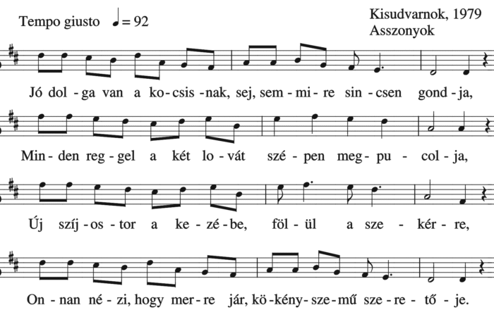 Jó dolga van a kocsisnak sej semmire sincsen gondja (ének, Felnőttek népdalai, szerelmi dal)