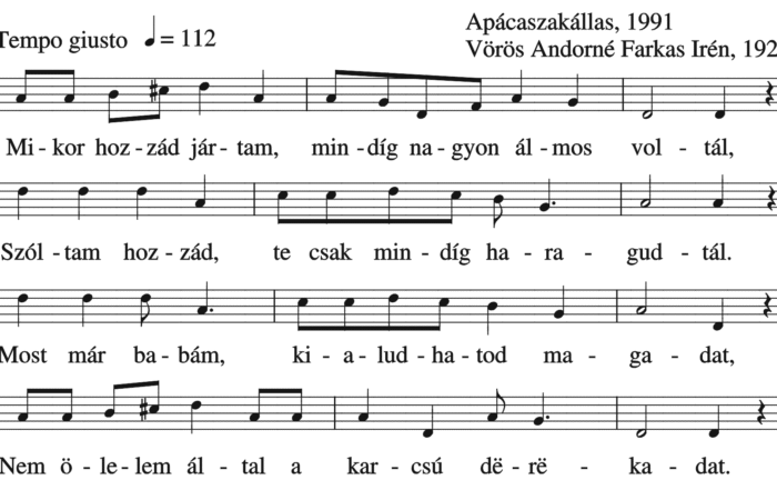 Mikor hozzád jártam mindig nagyon álmos voltál (ének, Felnőttek népdalai, szerelmi dal)