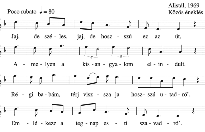 Jaj, de széles, jaj, de hosszú ez az út, Amelyen a kisangyalom elindult. Régi babám, térj vissza hosszú utadró’, Emlékezz...