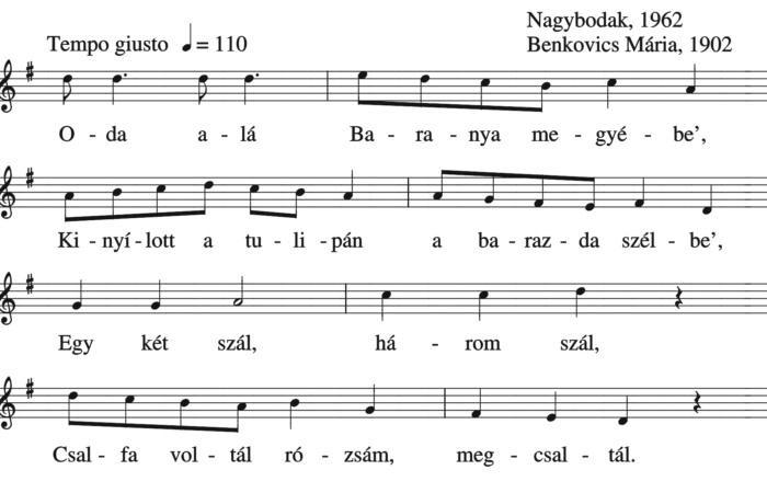 Oda alá Baranya megyébe’ (ének, Felnőttek népdalai, szerelmi dal)