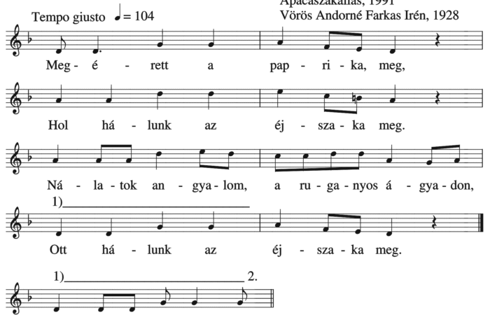 Megérett a paprika meg (ének, Felnőttek népdalai, szerelmi dal)