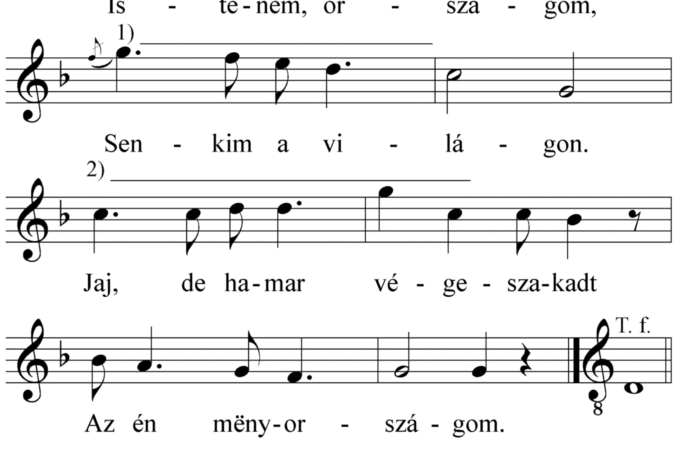1. Istenëm, országom, Senkim a világon. Jaj, de hamar vége szakadt, Az én mënyországom. 2. Istenëm azelőtt Tartottam szeretőt. Most is...