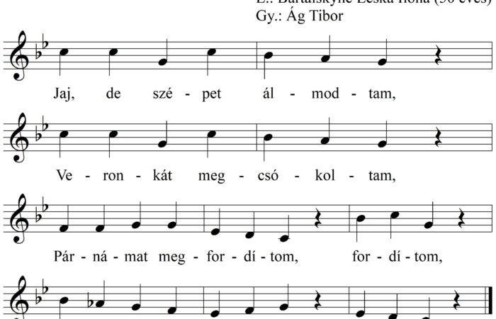 1. Jaj, de szépet álmodtam, Veronkát megcsókoltam, Párnámat megfordítom, fordítom, Ő is vélem álmodjon, álmodjon. 2. – Veron, lelkem, szeretsz-e?...