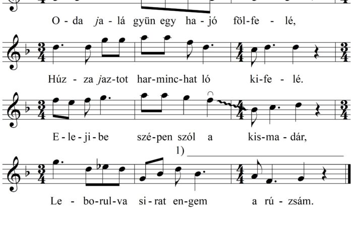 1. Odajalá gyün egy hajó fölfelé, Húzza jaztot harminchat ló kifelé. Elejibe szépen szól a kismadár, Leborulva sirat engem a...