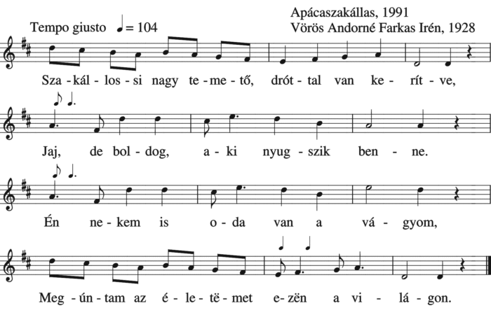 Szakállosi nagy temető, dróttal van kerítve, Jaj, de boldog, aki nyugszik benne. Énnekem is oda van a vágyom, Megúntam az...