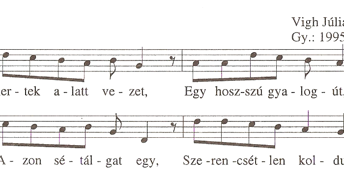 Hová való születésű, Karcsáro, Ménkű üssön annak a falujábo. Átkozzuk meg azt a papot egekbe, Aki minket összeadott sötétbe.