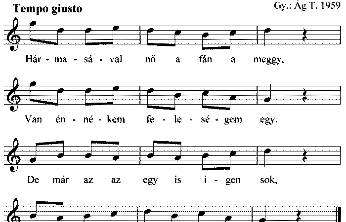 1. Hármasával nő a fán a mëggy, Van énnékem feleségem egy. De már az az egy is igen sok, Előbb-utóbb...