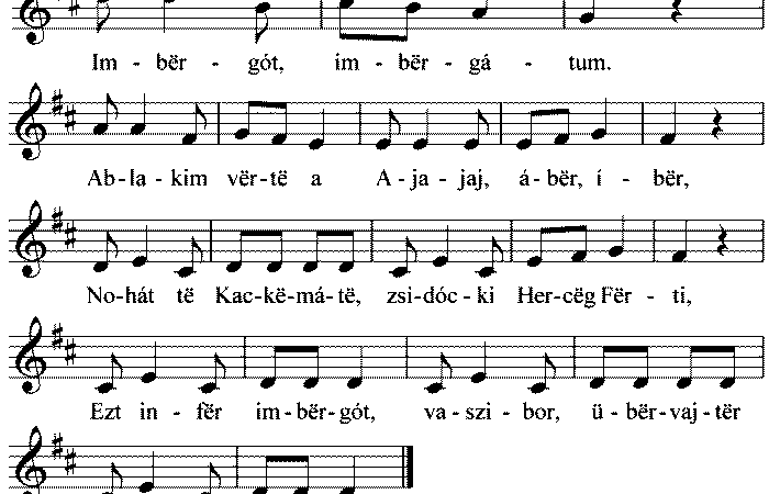 Imbërgót imbërgátum (ének, Felnőttek népdalai, tréfás, gúnyos dal)